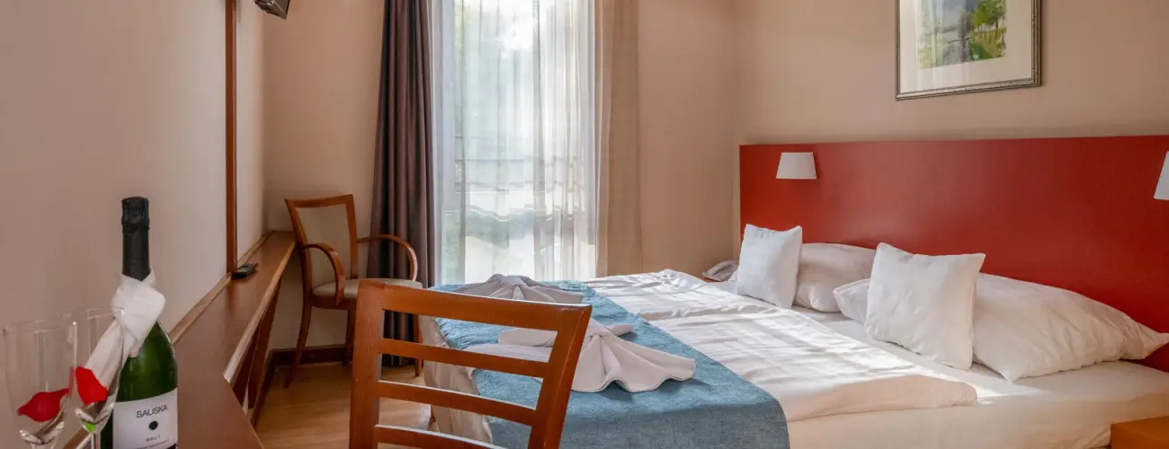 • A wellness részleg korlátlan használat: finn szauna, infrakabin, gőzkabin, sószoba, pezsgőfürdő, belső wellness medence, fitneszterem és 2 db napozóterasz